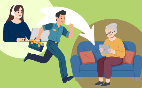ワイヤレスサポートをお申し込みの方は、特別価格でパソコン・スマホ・タブレットの設定や利用方法のレクチャーなど、技術的なスタッフの訪問サポートをご利用いただけるサービスです。